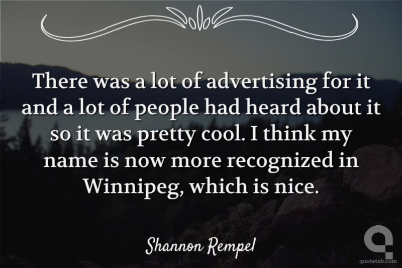 There was a lot of advertising for it and a lot of people had heard about it so it was pretty cool. I think my name is now more recognized in Winnipeg, which is nice.