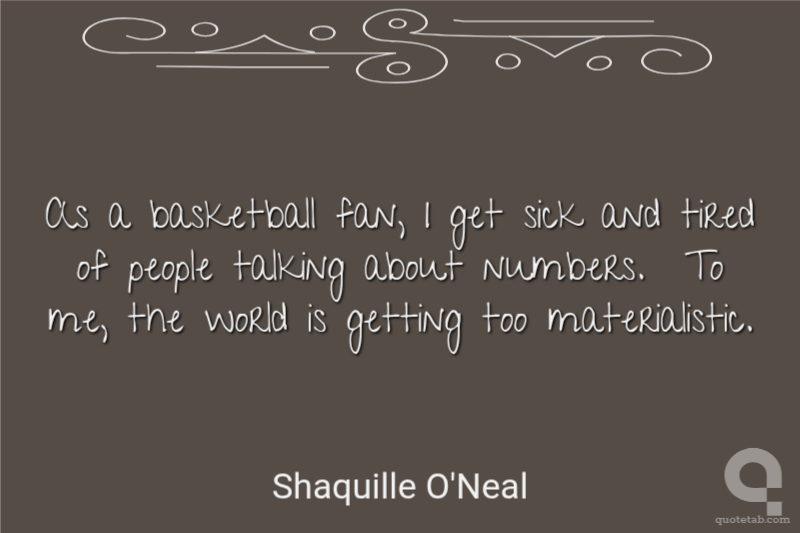 As a basketball fan, I get sick and tired of people talking about numbers. To me, the world is getting too materialistic.
