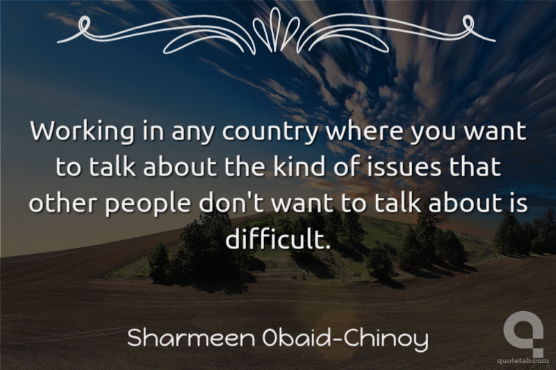 Working in any country where you want to talk about the kind of issues that other people don't want to talk about is difficult.