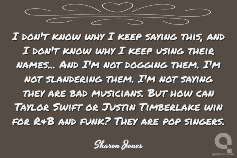 I don't know why I keep saying this, and I don't know why I keep using their names... And I'm not dogging them. I'm not slandering them. I'm not saying they are bad musicians. But how can Taylor Swift or Justin Timberlake win for R&B and funk? They are pop singers.