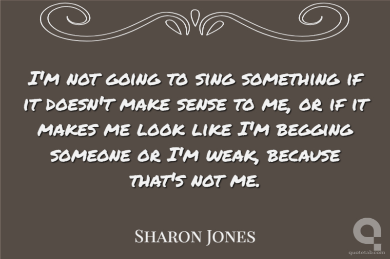 I'm not going to sing something if it doesn't make sense to me, or if it makes me look like I'm begging someone or I'm weak, because that's not me.