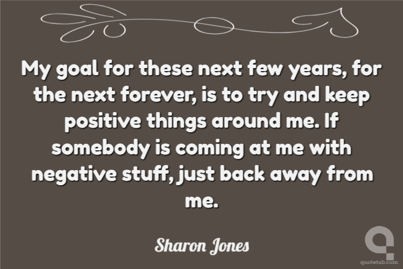 My goal for these next few years, for the next forever, is to try and keep positive things around me. If somebody is coming at me with negative stuff, just back away from me.