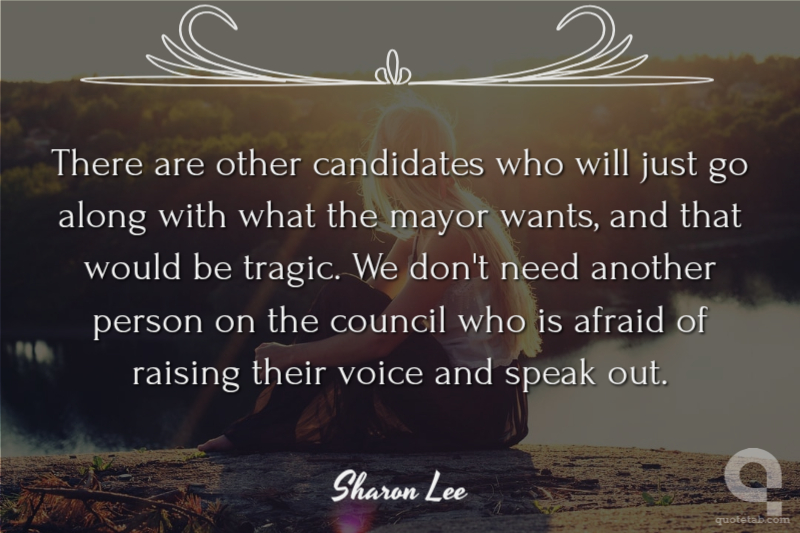 There are other candidates who will just go along with what the mayor wants, and that would be tragic. We don't need another person on the council who is afraid of raising their voice and speak out.
