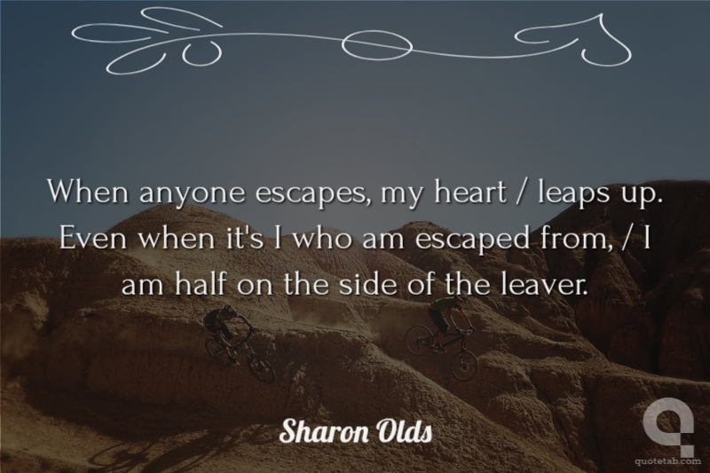 When anyone escapes, my heart / leaps up. Even when it's I who am escaped from, / I am half on the side of the leaver.