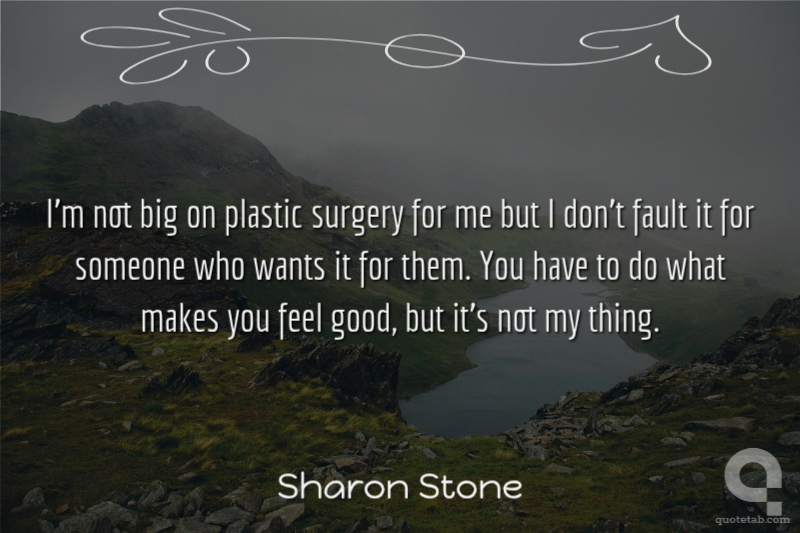 I'm not big on plastic surgery for me but I don't fault it for someone who wants it for them. You have to do what makes you feel good, but it's not my thing.