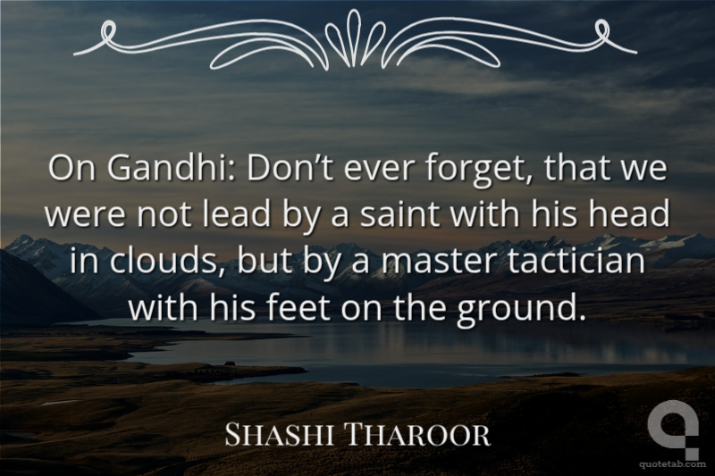 On Gandhi: Don’t ever forget, that we were not lead by a saint with his head in clouds, but by a master tactician with his feet on the ground.