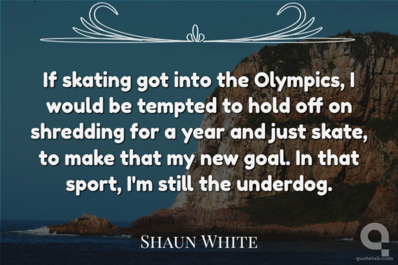 If skating got into the Olympics, I would be tempted to hold off on shredding for a year and just skate, to make that my new goal. In that sport, I'm still the underdog.