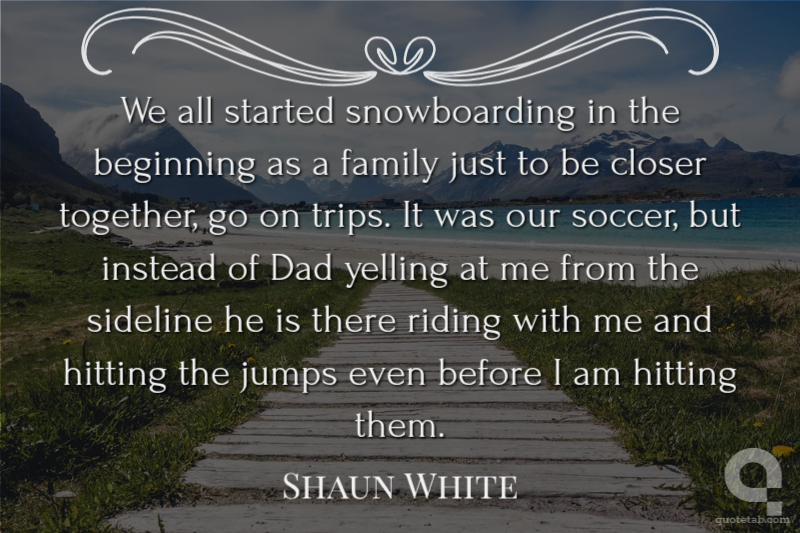 We all started snowboarding in the beginning as a family just to be closer together, go on trips. It was our soccer, but instead of Dad yelling at me from the sideline he is there riding with me and hitting the jumps even before I am hitting them.