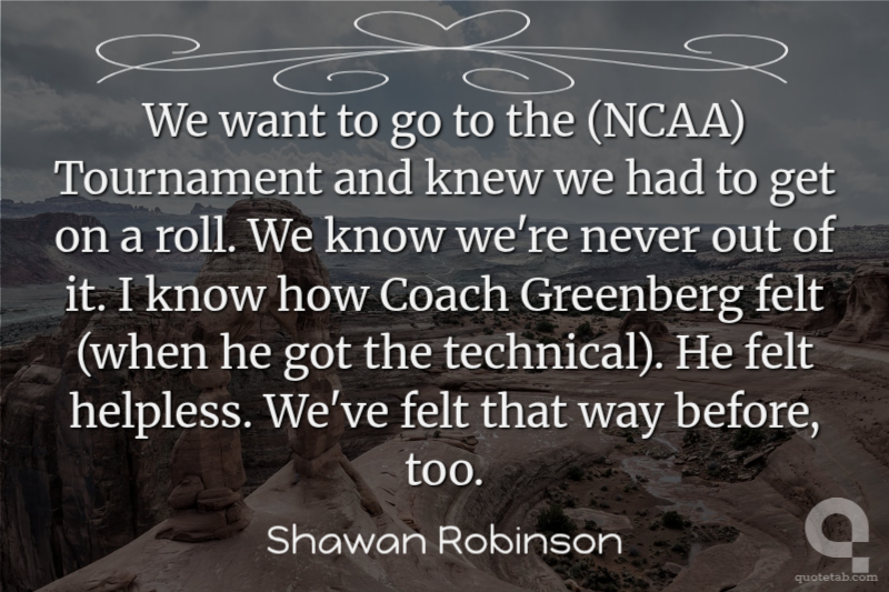 We want to go to the (NCAA) Tournament and knew we had to get on a roll. We know we're never out of it. I know how Coach Greenberg felt (when he got the technical). He felt helpless. We've felt that way before, too.