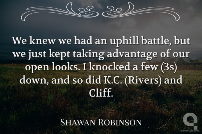 We knew we had an uphill battle, but we just kept taking advantage of our open looks. I knocked a few (3s) down, and so did K.C. (Rivers) and Cliff.