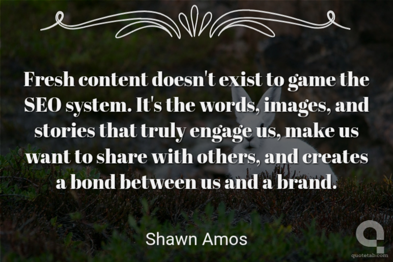 Fresh content doesn't exist to game the SEO system. It's the words, images, and stories that truly engage us, make us want to share with others, and creates a bond between us and a brand.
