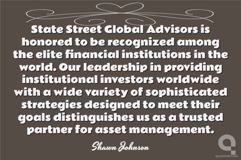 State Street Global Advisors is honored to be recognized among the elite financial institutions in the world. Our leadership in providing institutional investors worldwide with a wide variety of sophisticated strategies designed to meet their goals distinguishes us as a trusted partner for asset management.