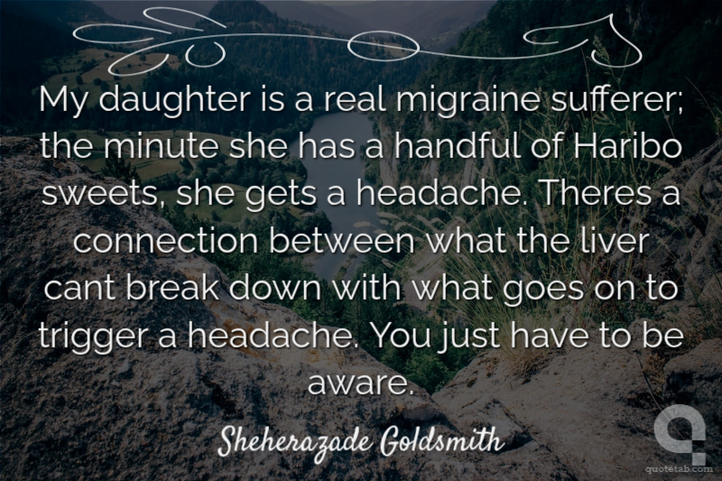 My daughter is a real migraine sufferer; the minute she has a handful of Haribo sweets, she gets a headache. Theres a connection between what the liver cant break down with what goes on to trigger a headache. You just have to be aware.