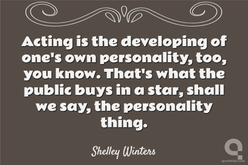 Acting is the developing of one's own personality, too, you know. That's what the public buys in a star, shall we say, the personality thing.