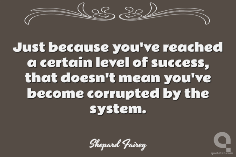 Just because you've reached a certain level of success, that doesn't mean you've become corrupted by the system.