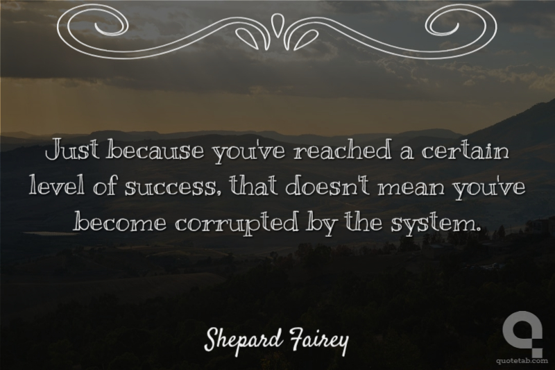 Just because you've reached a certain level of success, that doesn't mean you've become corrupted by the system.