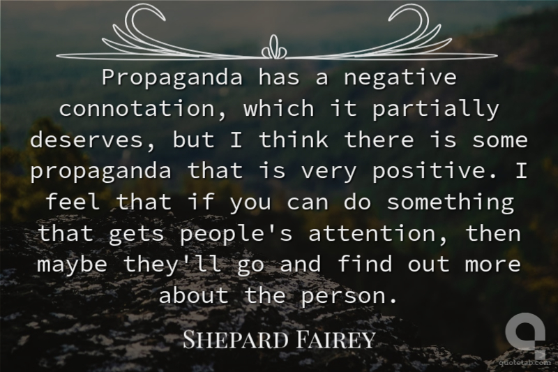 Propaganda has a negative connotation, which it partially deserves, but I think there is some propaganda that is very positive. I feel that if you can do something that gets people's attention, then maybe they'll go and find out more about the person.