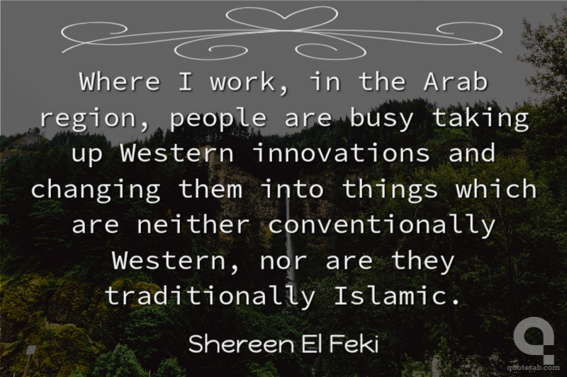 Where I work, in the Arab region, people are busy taking up Western innovations and changing them into things which are neither conventionally Western, nor are they traditionally Islamic.