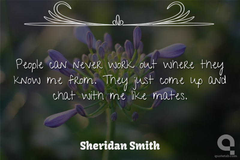 People can never work out where they know me from. They just come up and chat with me like mates.