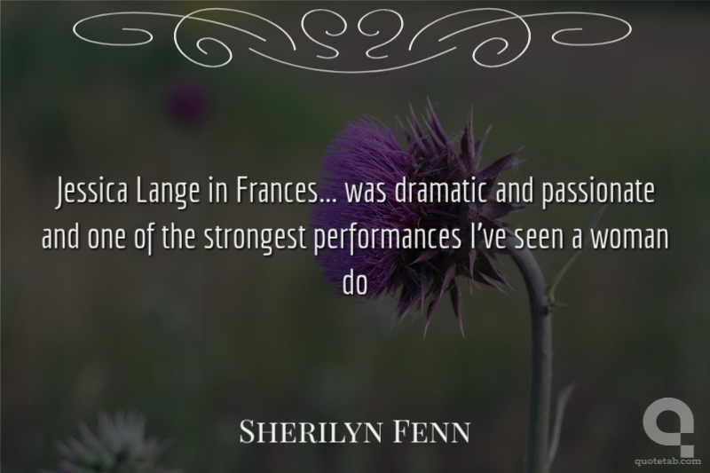 Jessica Lange in Frances... was dramatic and passionate and one of the strongest performances I've seen a woman do