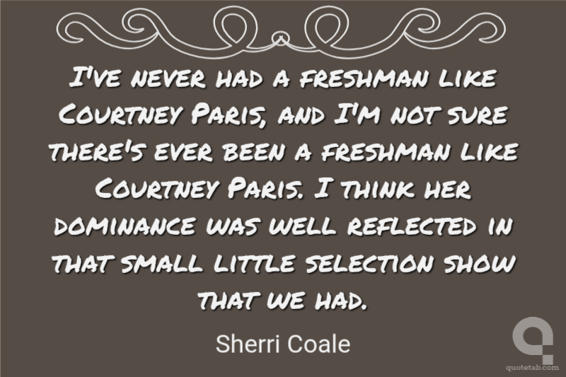 I've never had a freshman like Courtney Paris, and I'm not sure there's ever been a freshman like Courtney Paris. I think her dominance was well reflected in that small little selection show that we had.