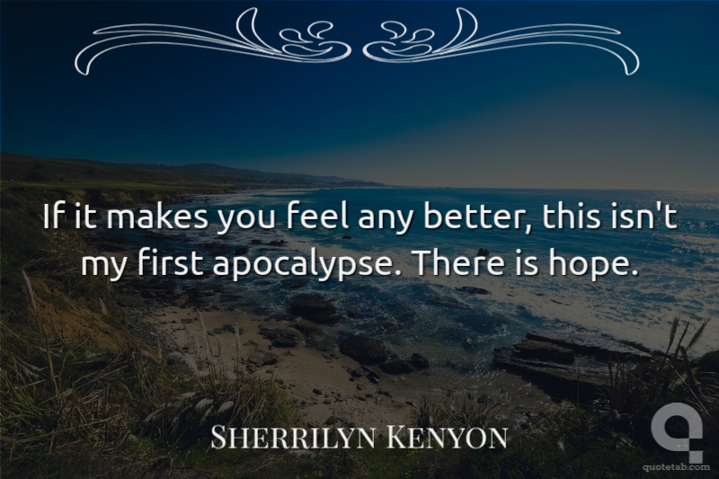 If it makes you feel any better, this isn't my first apocalypse. There is hope.