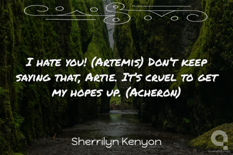 I hate you! (Artemis) Don’t keep saying that, Artie. It’s cruel to get my hopes up. (Acheron)