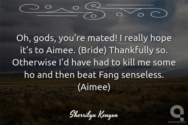 Oh, gods, you’re mated! I really hope it’s to Aimee. (Bride) Thankfully so. Otherwise I’d have had to kill me some ho and then beat Fang senseless. (Aimee)