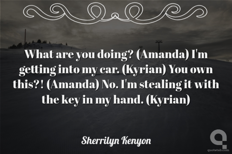What are you doing? (Amanda) I'm getting into my car. (Kyrian) You own this?! (Amanda) No. I'm stealing it with the key in my hand. (Kyrian)