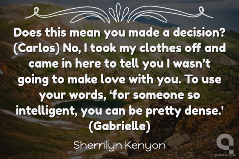Does this mean you made a decision? (Carlos) No, I took my clothes off and came in here to tell you I wasn’t going to make love with you. To use your words, ‘for someone so intelligent, you can be pretty dense.' (Gabrielle)