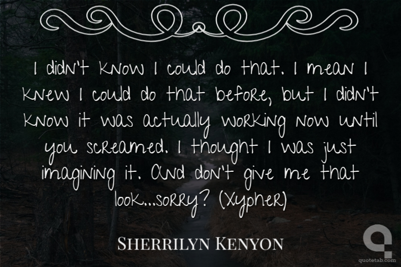 I didn’t know I could do that. I mean I knew I could do that before, but I didn’t know it was actually working now until you screamed. I thought I was just imagining it. And don’t give me that look…sorry? (Xypher)