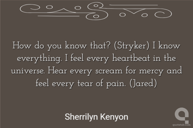 How do you know that? (Stryker) I know everything. I feel every heartbeat in the universe. Hear every scream for mercy and feel every tear of pain. (Jared)