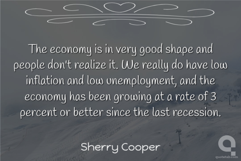The economy is in very good shape and people don't realize it. We really do have low inflation and low unemployment, and the economy has been growing at a rate of 3 percent or better since the last recession.