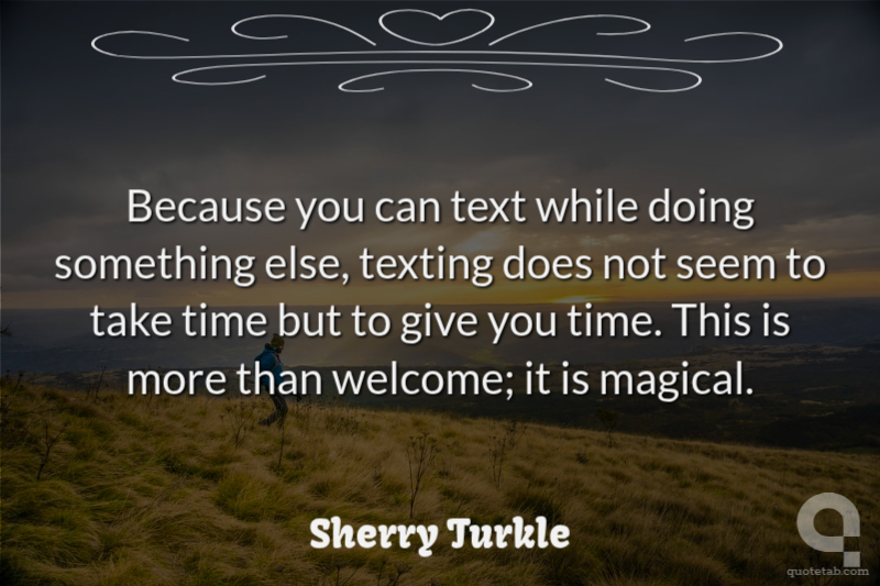 Because you can text while doing something else, texting does not seem to take time but to give you time. This is more than welcome; it is magical.