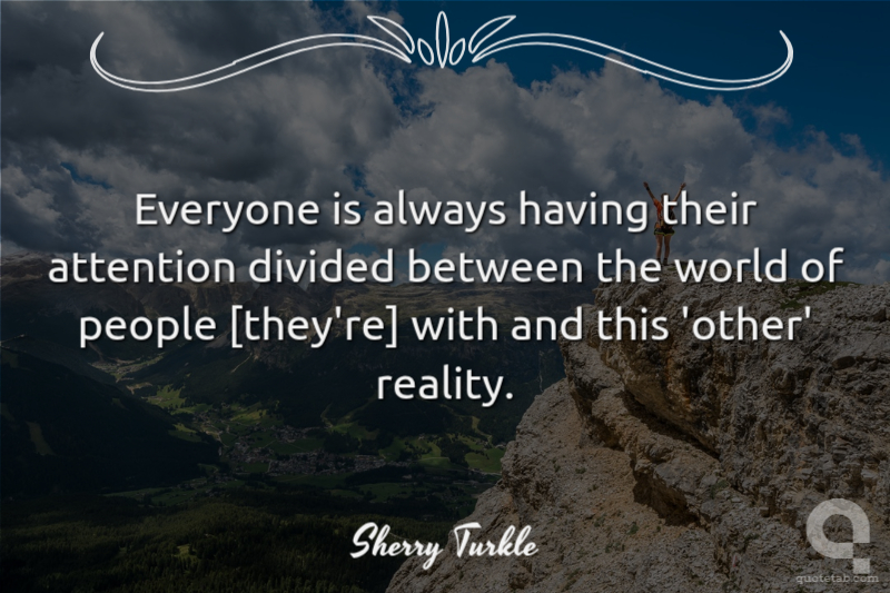 Everyone is always having their attention divided between the world of people [they're] with and this 'other' reality.