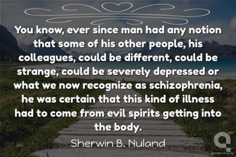 You know, ever since man had any notion that some of his other people, his colleagues, could be different, could be strange, could be severely depressed or what we now recognize as schizophrenia, he was certain that this kind of illness had to come from evil spirits getting into the body.