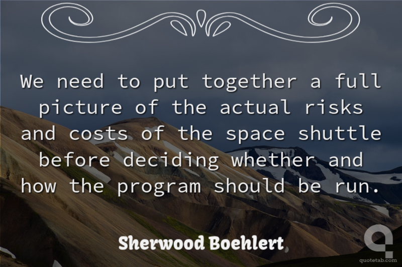 We need to put together a full picture of the actual risks and costs of the space shuttle before deciding whether and how the program should be run.