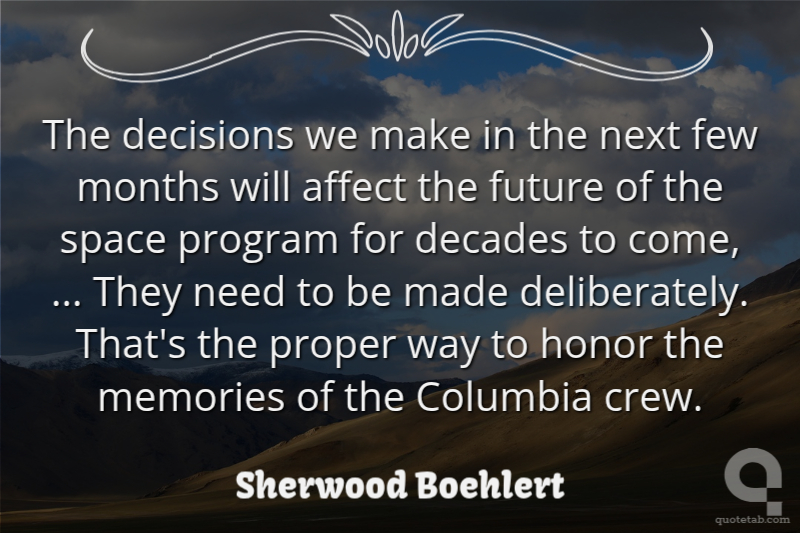 The decisions we make in the next few months will affect the future of the space program for decades to come, ... They need to be made deliberately. That's the proper way to honor the memories of the Columbia crew.