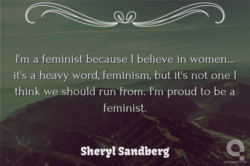 I'm a feminist because I believe in women... it's a heavy word, feminism, but it's not one I think we should run from. I'm proud to be a feminist.