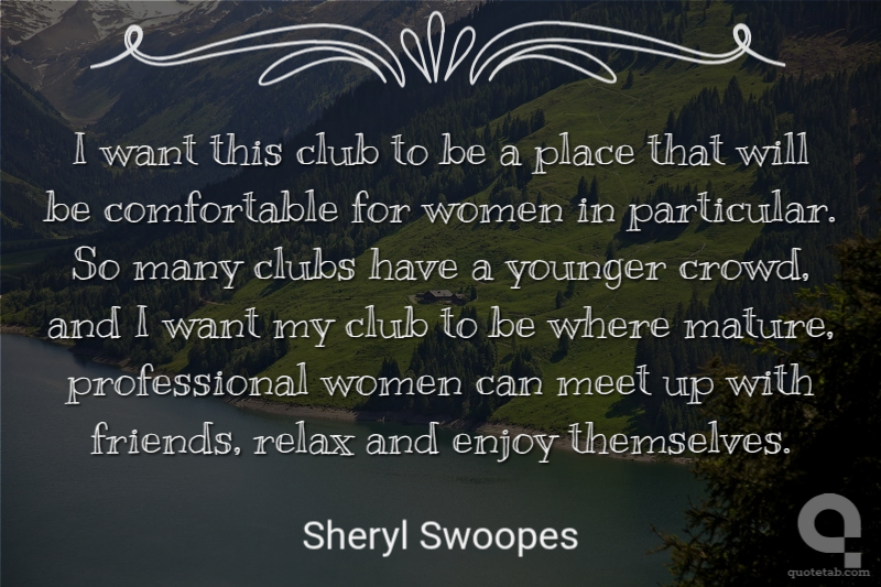 I want this club to be a place that will be comfortable for women in particular. So many clubs have a younger crowd, and I want my club to be where mature, professional women can meet up with friends, relax and enjoy themselves.