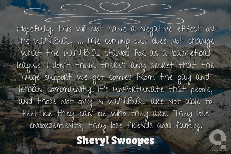 Hopefully, this will not have a negative effect on the W.N.B.A., ... Me coming out does not change what the W.N.B.A. stands for as a basketball league. I don't think there's any secret that the huge support we get comes from the gay and lesbian community. It's unfortunate that people, and those not only in W.N.B.A., are not able to feel like they can be who they are. They lose endorsements; they lose friends and family.