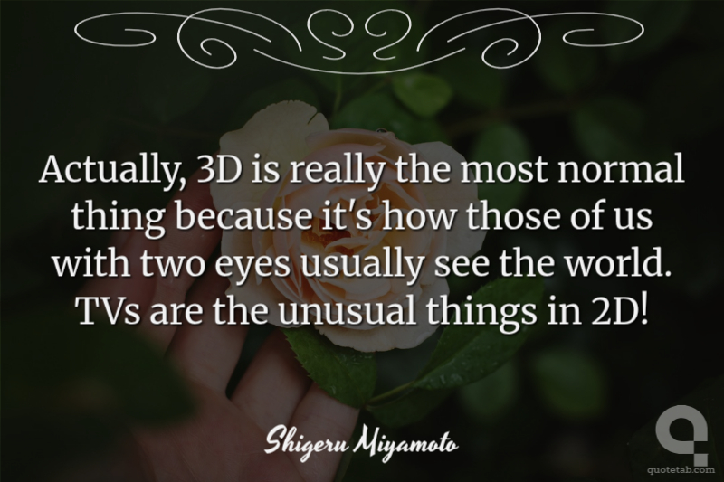Actually, 3D is really the most normal thing because it's how those of us with two eyes usually see the world. TVs are the unusual things in 2D!