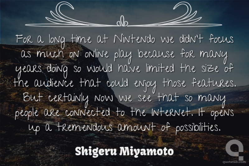 For a long time at Nintendo we didn't focus as much on online play because for many years doing so would have limited the size of the audience that could enjoy those features. But certainly now we see that so many people are connected to the Internet. It opens up a tremendous amount of possibilities.