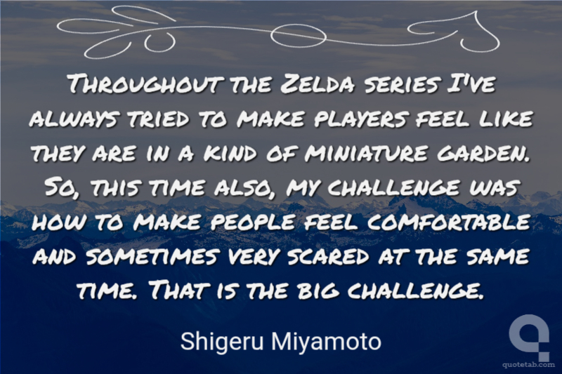 Throughout the Zelda series I've always tried to make players feel like they are in a kind of miniature garden. So, this time also, my challenge was how to make people feel comfortable and sometimes very scared at the same time. That is the big challenge.