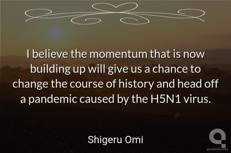 I believe the momentum that is now building up will give us a chance to change the course of history and head off a pandemic caused by the H5N1 virus.