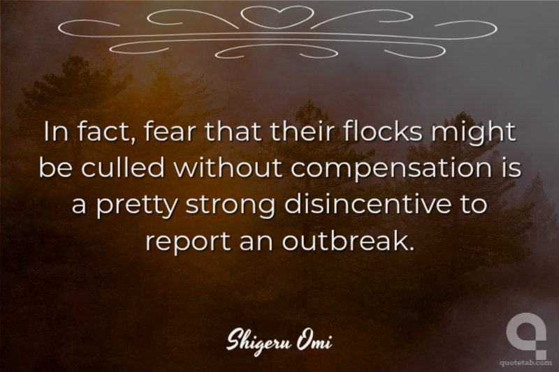 In fact, fear that their flocks might be culled without compensation is a pretty strong disincentive to report an outbreak.