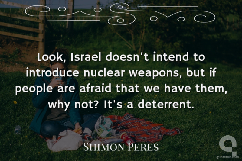 Look, Israel doesn't intend to introduce nuclear weapons, but if people are afraid that we have them, why not? It's a deterrent.