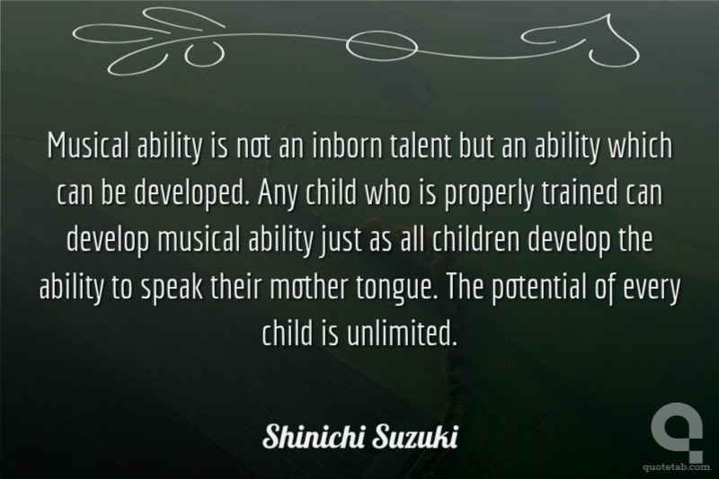 Musical ability is not an inborn talent but an ability which can be developed. Any child who is properly trained can develop musical ability just as all children develop the ability to speak their mother tongue. The potential of every child is unlimited.
