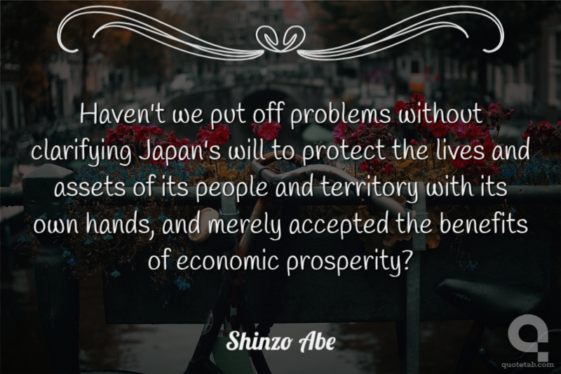 Haven't we put off problems without clarifying Japan's will to protect the lives and assets of its people and territory with its own hands, and merely accepted the benefits of economic prosperity?