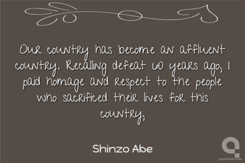 Our country has become an affluent country. Recalling defeat 60 years ago, I paid homage and respect to the people who sacrificed their lives for this country,